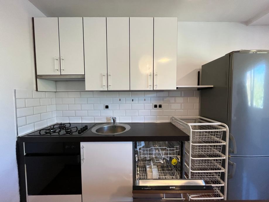 Stan je idealan za 1-2 osobe i prodaje se namješten i odmah useljiv i funkcionalan- uključujući od aparature: perilicu za veš i suđe, klimu, hladnjak i TV.