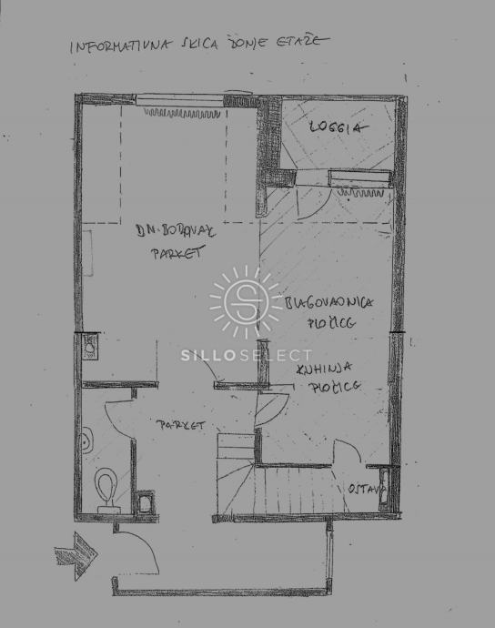 Raspored prostora: ulazni hodnik, predprostor, WC, dnevni boravak povezan s blagovaonicom (s izlazom na lođu), kuhinja s ostavom, 2 spavaće sobe, kupaonica s WC-om.