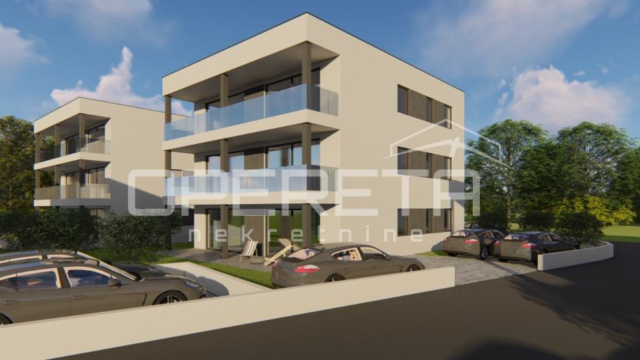 Na odličnoj lokaciji u Medulinu, u mirnom dijelu naselja, a istovremeno u neposrednoj blizini mora i svih potrebnih sadržaja, prodaje se prostran stan u prizemlju moderne novogradnje.