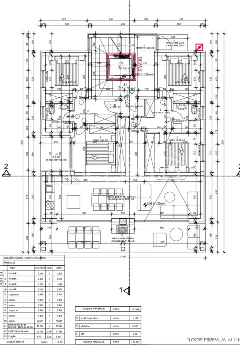 Ukupna neto površina stana iznosi 112 m², a odlikuje se izuzetno funkcionalnim i obiteljskim rasporedom.