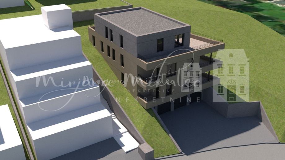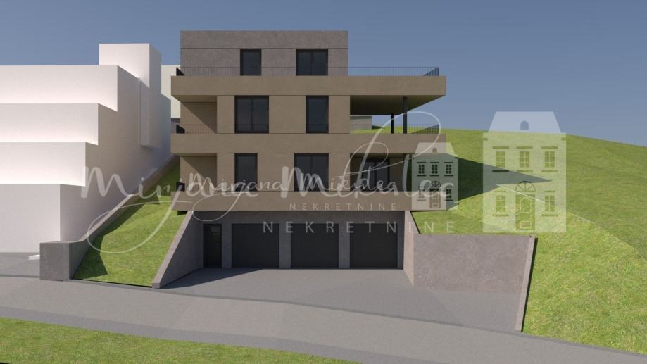 Stan je veličine 159 m2, od čega je zatvoreni prostor 131,7 m2. Objekat ima tri stana, nalazi se u jednosmjernoj ulici bez prometa. Uz stan ide garaža od 16m2 ( visine 3,5 m), parkirno mjesto i mali vrt.