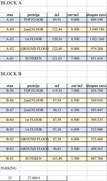 Luksuzna novogradnja sa spektakularnim pogledom na more i luku Gruž. Projekt se sastoji od dvije zgrade južne orijentacije, BLOK A koja se sastoji od 5 stanova (penthouse, 2. kat, 1. kat, prizemlje i suterenu s vrtom) i BLOK B koja se sastoji od 8 stanova (penthouse, dva stana na 2. katu, dva stana na 1. katu, dva stana u prizemlju i stan u suterenu s vrtom). U stanovima je moguć izbor parketa, sanitarija i keramike. U sklopu zgrade se nalazi podzemna garaža te je u svaki stan obvezna kupovina dva garažna parkirna mjesta. Cijena jednog parkirnog mjesta iznosi 25.000,00EUR. Useljenje u zgradu je predviđeno za kraj 2026. godine. U ovoj fazi projekta je moguće spojiti dva ili više stanova koji se nalaze na istoj etaži u jedan veći stan.