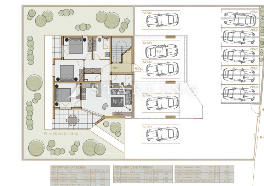 Stanu pripadaju dva parking mjesta (uz nadoplatu natkriveno parking mjesto) i spremište.