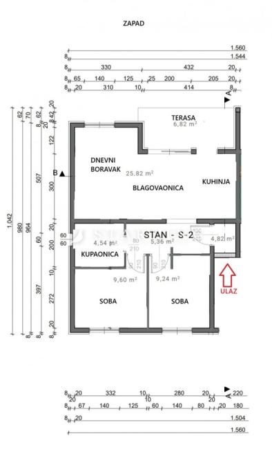 Stan S2 (prizemlje) – trosobni stan (dvije spavaće sobe)