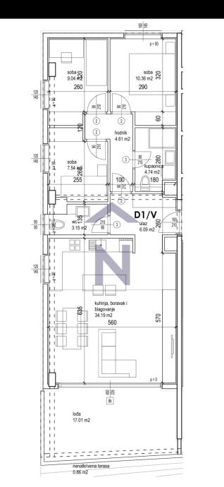 Podna površina stana iznosi 98m2, neto površina stana je 93m2.