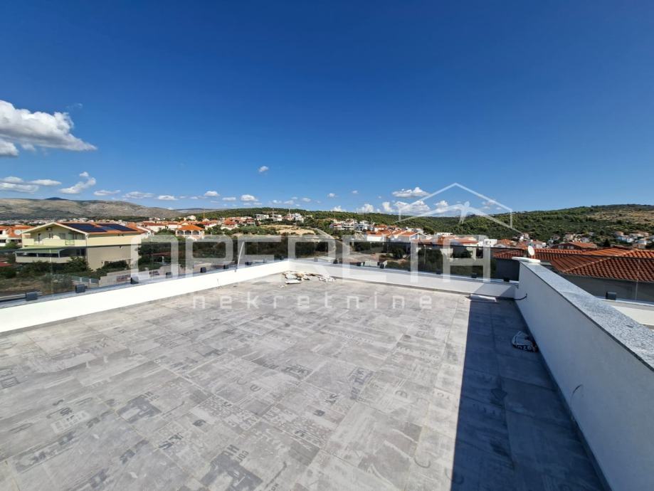 Novoizgrađeni dvosobni apartman, krovna terasa, pogled na more, Okrug (prodaja)