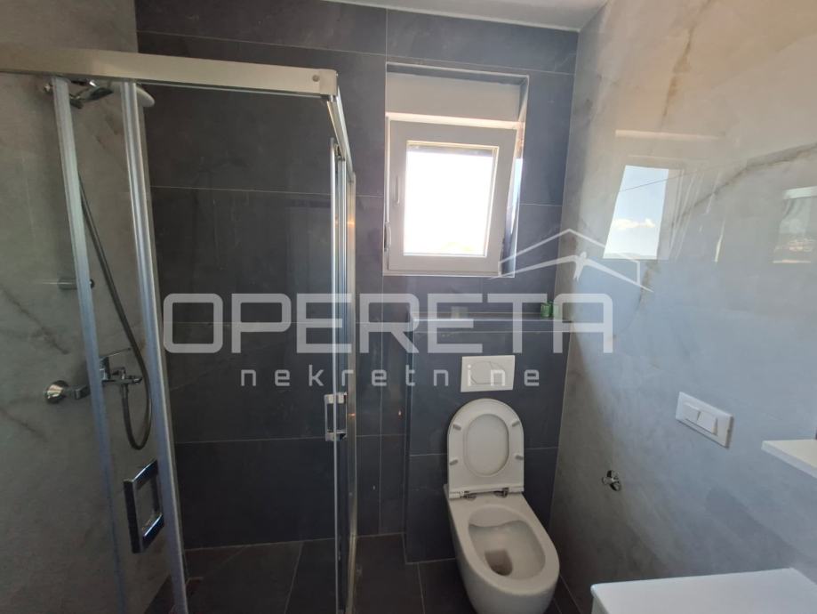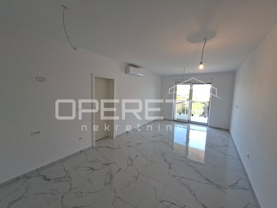 U mirnom dijelu Okruga Gornjeg, približno 400 metara do mora, nalazi se moderan dvosobni stan u novogradnji, odmah useljiv. Smješten je na trećem katu manje zgrade i nudi uravnotežen spoj kvalitetne izvedbe, funkcionalnog tlocrta i velikih vanjskih površina. Unutarnja površina iznosi 54,59 m², neto stambena površina s pripadajućim vanjskim dijelovima 83,39 m², a ukupna podna kvadratura svih segmenata 144,78 m².