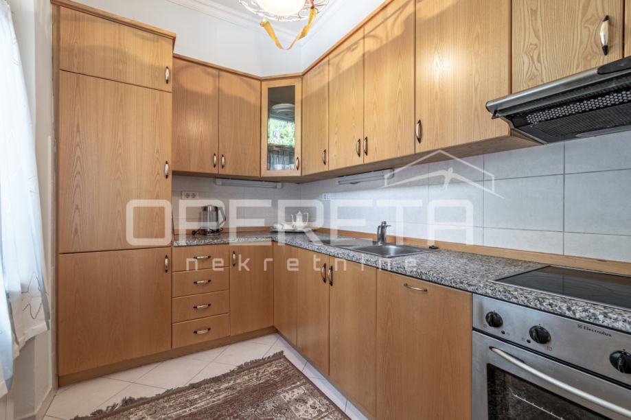 Stan se odlikuje funkcionalnim rasporedom i prozračnim prostorijama, uz mogućnost personalizacije i uređenja prema vlastitim afinitetima. Posebna prednost je pripadajući dio 100 m² okućnice, idealne za opuštanje na otvorenom u hladu mediteranskog raslinja.