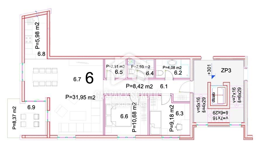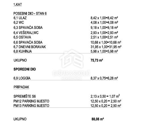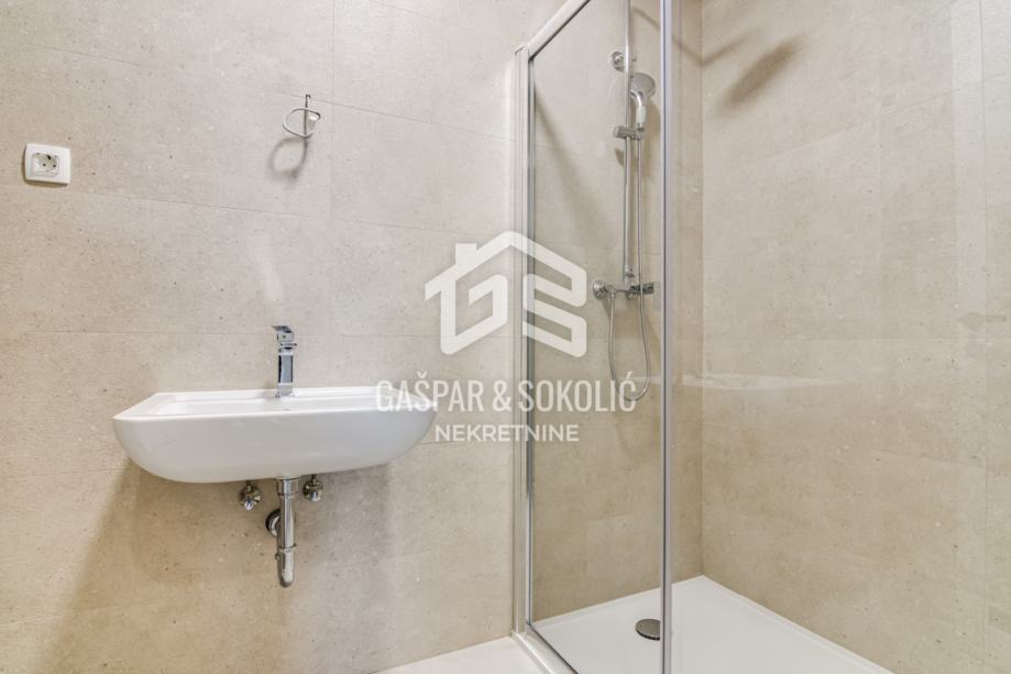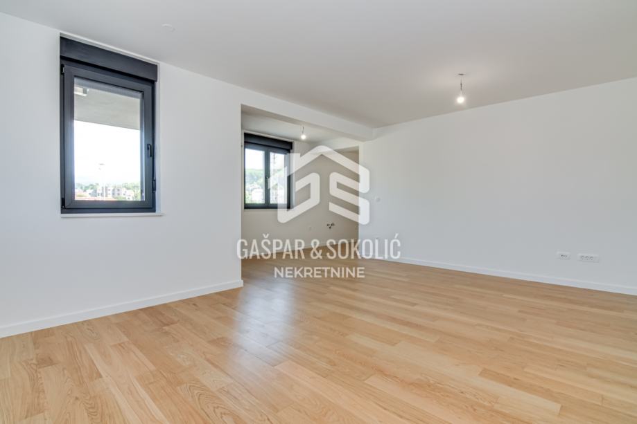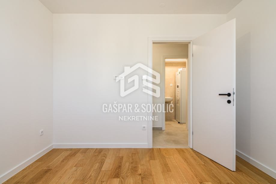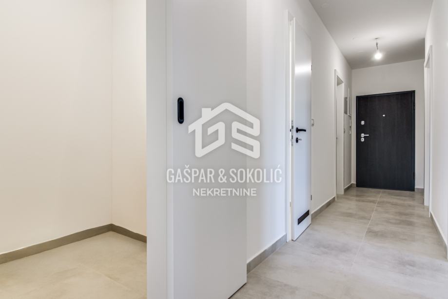 Stan ukupne površine 88,08 m² osmišljen je s naglaskom na udobnost, praktičnost i kvalitetu života. Sastoji se od prostranog dnevnog boravka povezanog s kuhinjom i blagovaonicom, dviju udobnih i prozračnih spavaćih soba, moderno opremljene kupaonice, dodatnog odvojenog WC-a, vešeraja, te zatvorene lođe, koja nudi ugodan prostor za opuštanje tijekom cijele godine. Zgrada ima lift.