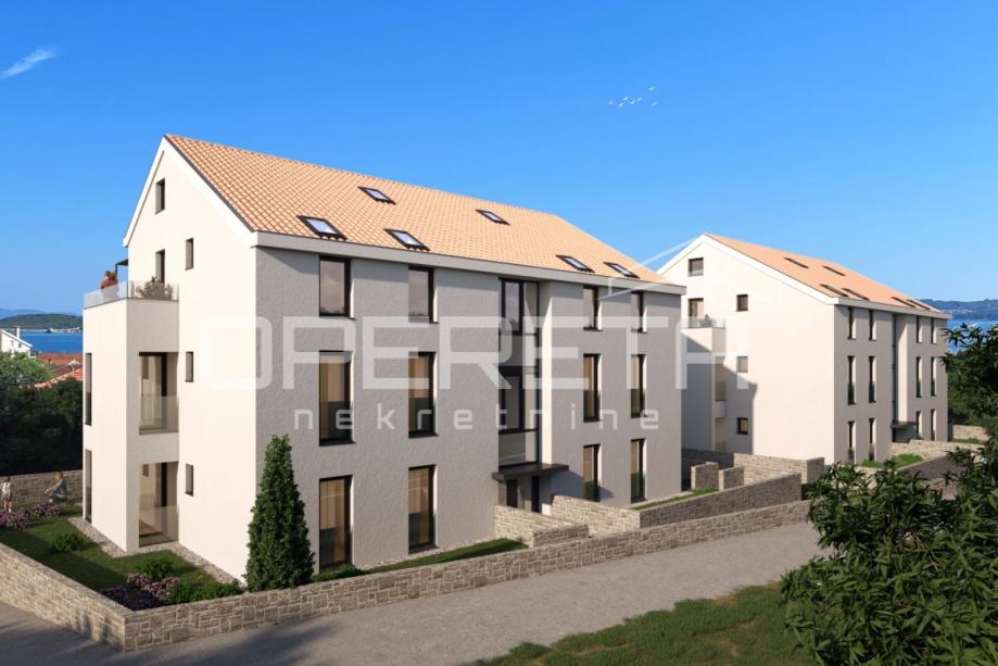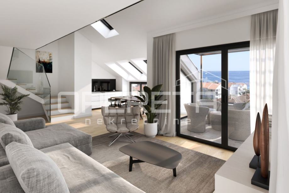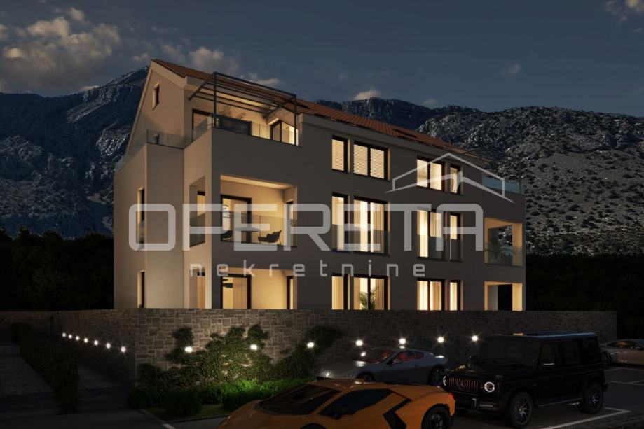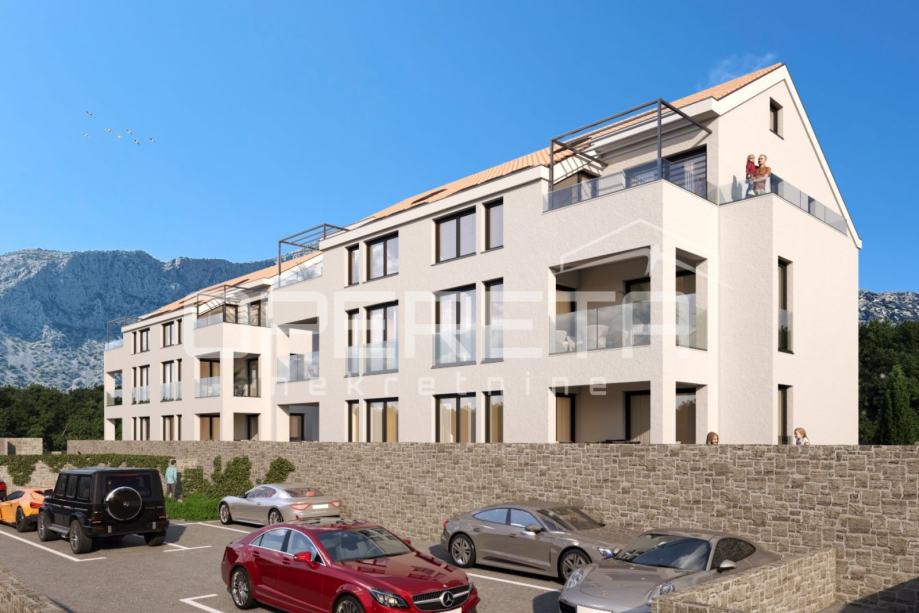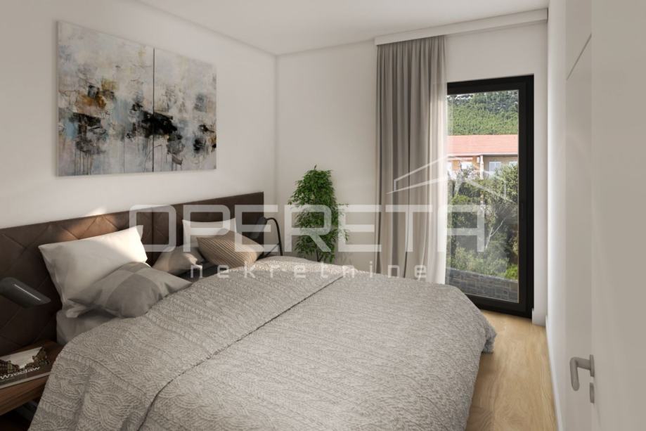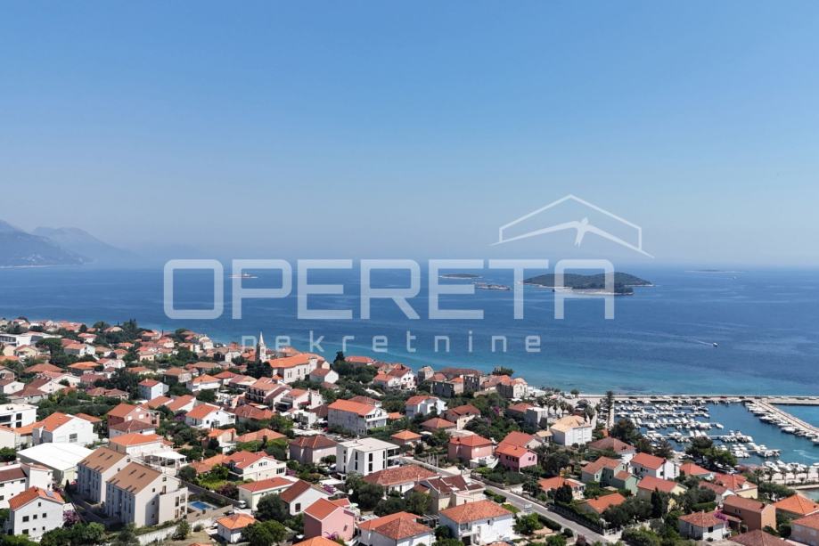 Na prodaju je prostrani i moderno uređeni stan u prizemlju novogradnje u Orebiću, ukupne površine 99 m². Nekretnina se sastoji od dvije spavaće sobe, dvije elegantno opremljene kupaonice, dvije loggie i velike otvorene terase, a uz stan pripada i privatni vrt površine 55 m².