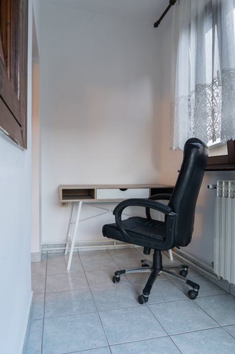 Stan u dvorištu koji se sastoji od predsoblja 5,73m2, dvije sobe 13,50m2 i 26,28m2, kuhinje 10,65m2, kupaonice 5,17m2, stepenica 2,69m2 i 1,80m2. Pomoćna podrumska prostorija 16,29m2 i hodnik 8,08m2, ukupno 24,37m2. Stolarija je drvena. Na podovima su laminati i pločice. Grijanje je centralo gradsko- toplana.