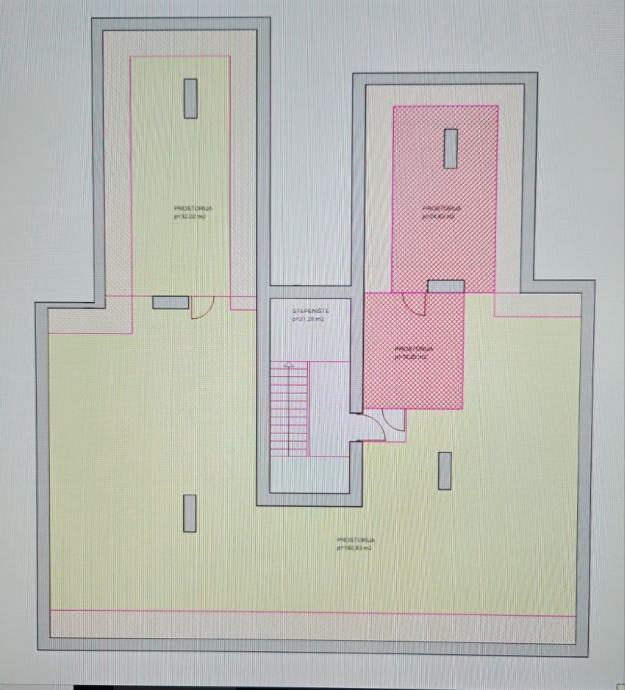 Tavanski prostor, započeta gradnja, površine cca 255m2. Moguće je prostor podjijeliti u 2-4 stana.