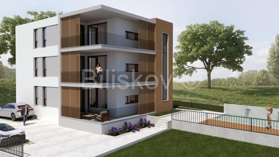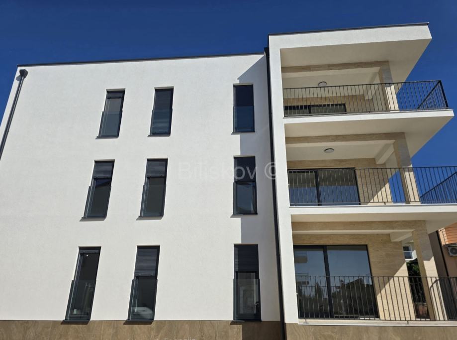 Na prodaju je prostrani stan na prvom katu moderne zgrade s tri etaže, površine 126 m². Stan se sastoji od tri spavaće sobe, dvije kupaonice i zasebnog gostinjskog WC-a. Otvoreni dnevni boravak nudi obilje prostora za kuhanje, blagovanje i opuštanje, s izravnim pristupom terasi. Terasa nudi više od samog vanjskog prostora – odavde se pruža prekrasan pogled na more.