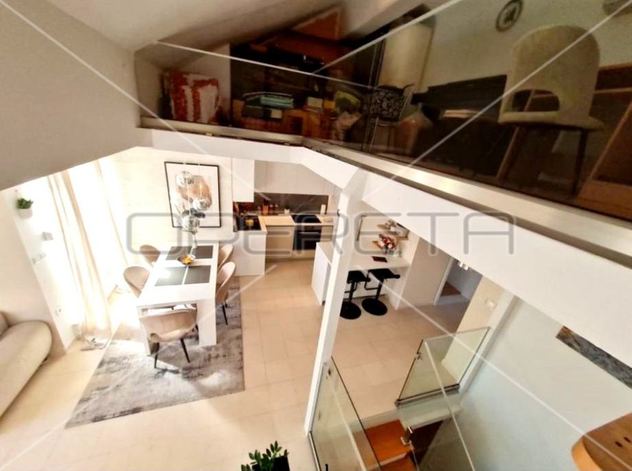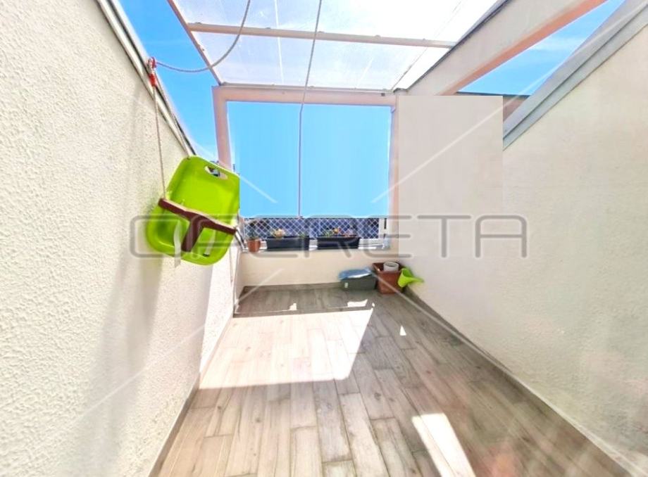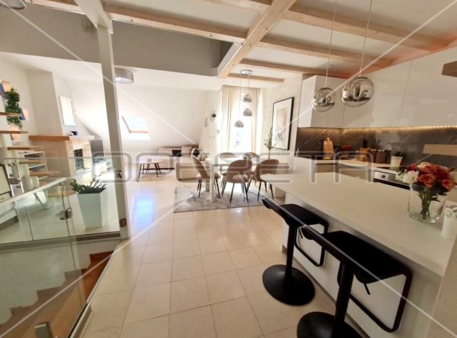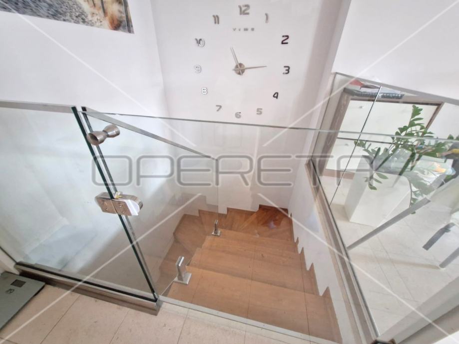 PRODAJA, STAN, ZAGREB, Poljanice, 127m2, kao nov 4-sob s mogućnošću 5-sobnog. Stan ima zatvorenog prostora 115m2 a sastoji se: DONJA ETAŽA od hodnika, dnevnog boravka s kuhinjom i blagovaonicom, zatvorene loggie, kupaonice s wc-om, spavaće sobe te stepenica koje vode na kat; GORNJA ETAŽA sastoji se od dnevnog boravka s kuhinjom i blagovaonicom, kupaonice s wc-om, dvije spavaće sobe te galerije za uredski prostor ili odlaganje stvari. Dnevni boravak može biti i dodatna spavaća soba. Stanu pripadaju i dvije otvorene terase obračunate po koeficijentu u ukupnu kvadraturu stana te spremište. U stanu adaptirani podovi, stolarija unutarnja i vanjska, keramika, instalacije odvodne i dovodne...Kuhinja je prostrana, moderno i funkcionalno uređena te opremljena ugradbenim aparatima po mjeri. Brižno održavan stan s toplinom doma i funkcionalnim prostorom. U neposrednoj blizini nalazi se tramvaj, autobus, osnovna škola, vrtić, crkva, trgovine i dr. te ostali sadržaji koji čine idealno mjesto za udoban život. PREPORUČUJEMO!