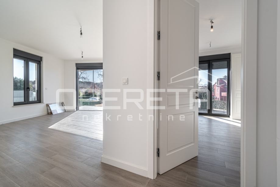Stan se sastoji od ulaznog hodinika, dnevnog prostora sa kuhinjom i blagavaonicom open space koncepta s izlazom na terasu i u vrt, dvije spavaće sobe od kojih jedna ima vlastitu kupaonicu i "wake in" ormar te još jedne kupaonice