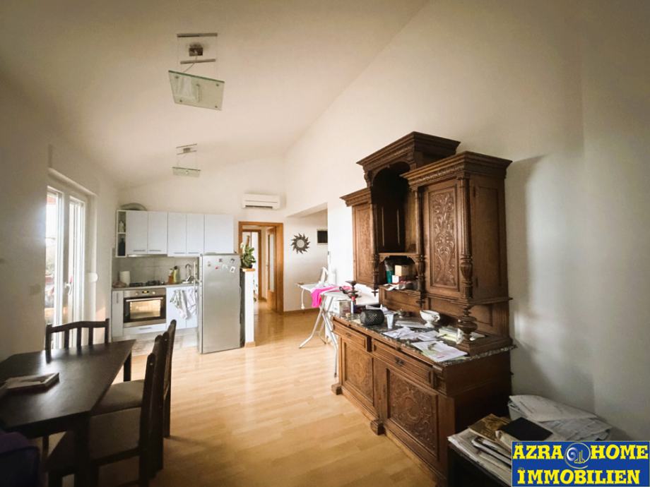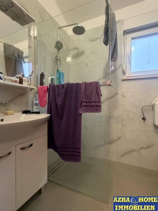Iz trpezarije se izlazi na terasu koja je orjentirana prema zapadu . S terase je pogled na more. Stan se grije i hladi klima uređajem. Prodaje se sa kuhinjom sa ugrađenim uređajima i ormarom u spavaćoj sobi.