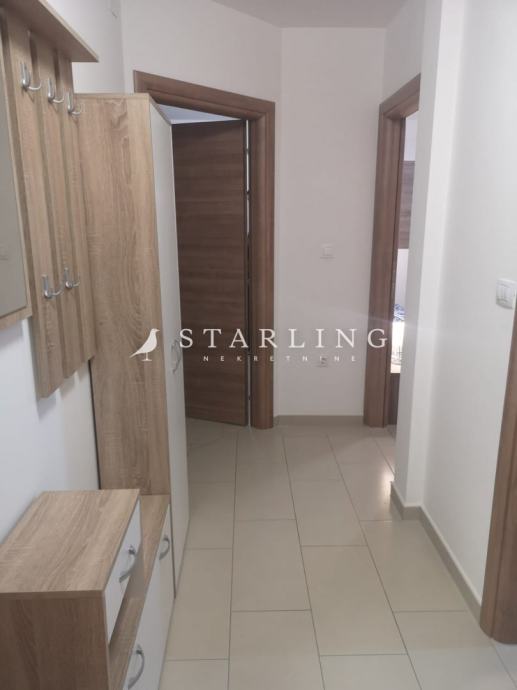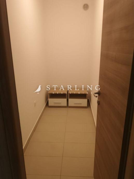 Stan se sastoji se od ulaznog prostora kuhinje s blagovaonom i dnevnim boravkom s izlazom na komfornu zatvorenu terasu, spavaće sobe, kupaone i radne sobe koja se može prenamijeniti u dječju sobu.