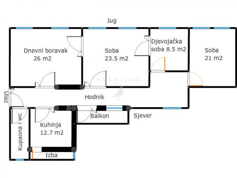 Stan je dvostrano orijentiran i prepun je svjetla. (Jug-Sjever)