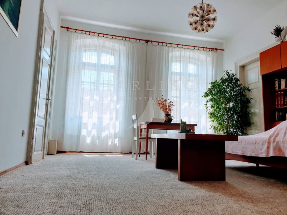 Stan krase svjetlost, visoki stropovi, odličan i prilagodljiv tlocrt zbog malo nosivih zidova, vrhunska lokacija i parking u samom centru.