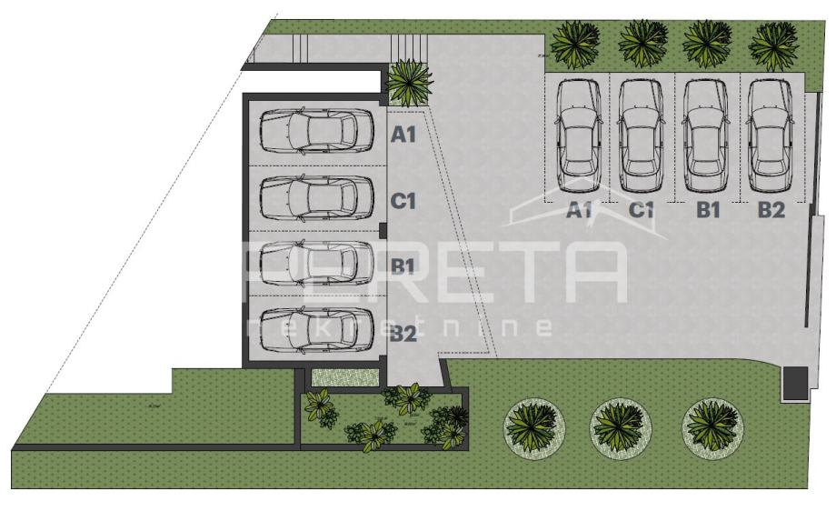 Svaki stan dolazi sa jednim garažnim i jednim vanjskim parkirnim mjestom.