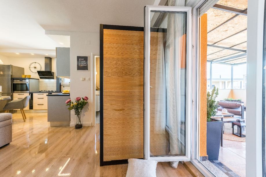 Stanu pripada vanjsko parkirno mjesto Prostrana lijepa TERASA od 34m2 sa dodatnom novom termoizolaciju na krovu. Stan je kompletno uređen i renoviran, a zgrada je renovirana 2023g. Potpuno novi krov i odrađena sanacija fasade. Sve u vrhunskom stanju. Terasa se sa dodatnom investicijom može zatvoriti te dobivate dodatnih 34m2 stambene površine. Ukoliko nekoga zanima kao investicija, uhodan je posao iznajmljivanja u kojem je prihod godišnje 30.000,00eur. Obzirom da se stan iznajmljuje dnevno, to je i garancija održavanja i čistoće. Sve je kao i na slikama, a susjedi su odlični!