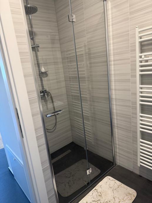 Ima klima uređaj, električne rolete i protuprovalna vrata. U kupaonici je postavljena tuš kabina.