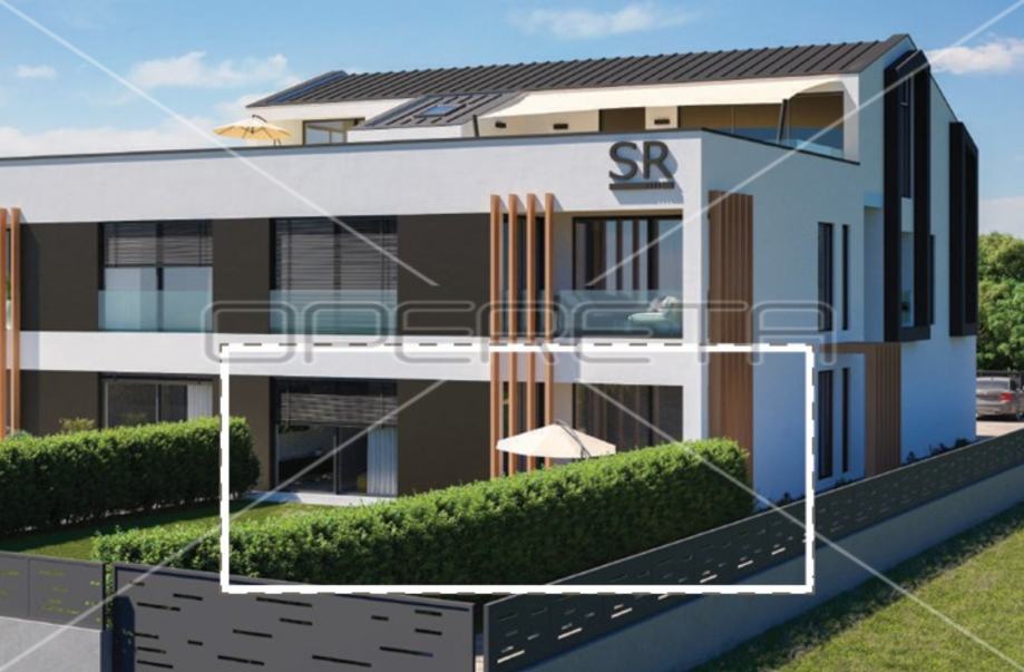 Istra, Rovinj: Na prodaju je dvosobni stan B u prizemlju stambene zgrade koja je trenutno u izgradnji, s neto površinom od 127 m². Stan se sastoji od ulaznog hola (6,7 m²), kupaonice (5,9 m²), praonice (1,9 m²), spavaće sobe (12,7 m²), kupaonice (6,0 m²), spavaće sobe (12,1 m²), dnevnog boravka s kuhinjom otvorenog plana (36,8 m²), lođe (10,1 m²), terase (3,9 m²), privatne garaže (17,6 m²), spremišta (5,1 m²), vrta (177,6 m²) i vanjskog parkirnog mjesta (15,5 m²).