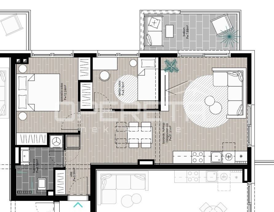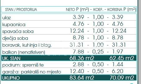 Stan, novogradnja, prodaja, Zagreb, Trešnjevka sjever, Rudeš, 70,09m2, 3S, koji se sastoji od ulaznog hodnika, kuhinje s blagovaonicom i dnevnog boravka, dvije spavaće sobe, kupaonice i balkona (ukupno 62,45m2). Stanu pripada garažno parkirno mjesto površine 12,40m2 i spremište u podrumu površine 2,88m2.