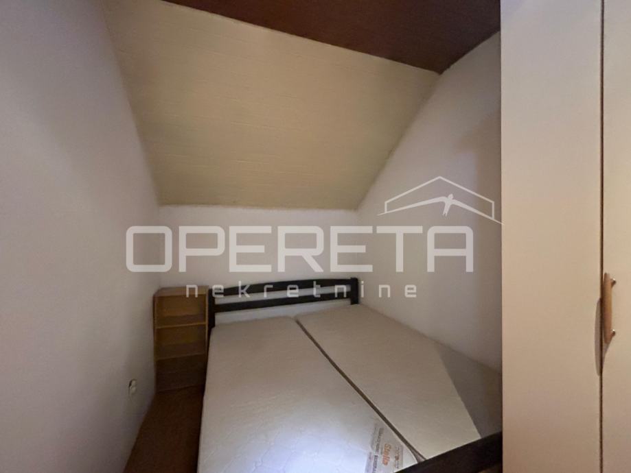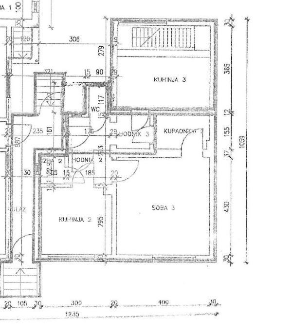 Stan na 1. katu (96m2) se sastoji od balkona, dnevnog boravka s blagovaonicom, kuhinje, 2 spavaće sobe, kupaonice s WC-om te još jedne sobe u potkrovlju. Pripada mu još i garaža te 2 prostorije u podrumu. Brojila vode, struje i plina su odvojena. Prodaju se kao cjelina, a adaptacijom oba stana se može izvesti spajanje u jednu cjelinu što bi bilo idealno za veću obitelj ili kao investicija! Blizina svih sadržaja potrebnijih za život na 5 minuta hoda na jako mirnoj lokaciji. Preporuka!