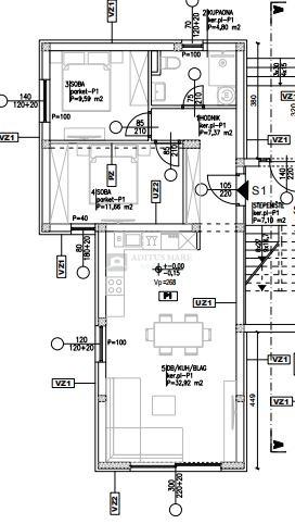 Pripadak stanu S1 je terasa površine 24,30x0,20=4,86m2, kao i dvorište 92m2x0,10=9,20m2, što daje ukupnu površinu od 82,90m2.