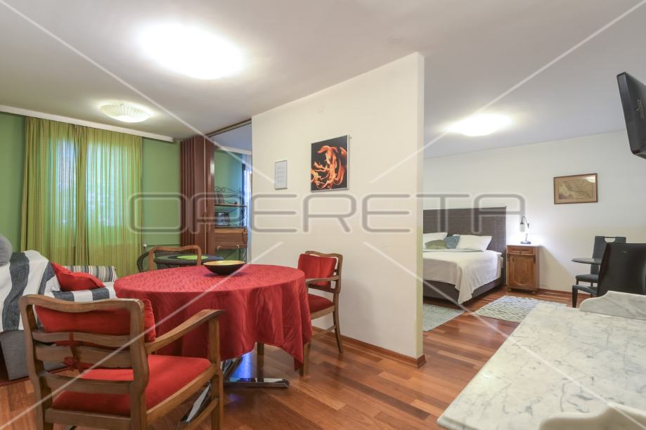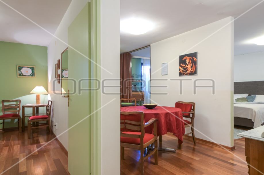 Prodaje se 2,5 soban ugodan i "otvoren" stan na atraktivnoj i traženoj lokaciji, u prizemlju kvalitetno građene zgrade s liftom. Sastoji se od 2 sobe, kuhinje, blagovaonice, kupaonice s WC-om, ulaznog hodnika i predsoblja ( s walk-in ormarima). Prodaje se opremljen uređajima i namješten (osim namještaja u predsoblju). Parking ispred zgrade. U blizini svih potrebnih sadržaja za kvalitetan život. Prilika novom vlasniku za stanovanje ili kao investicija i nastavak uhodanog dnevnog najma!