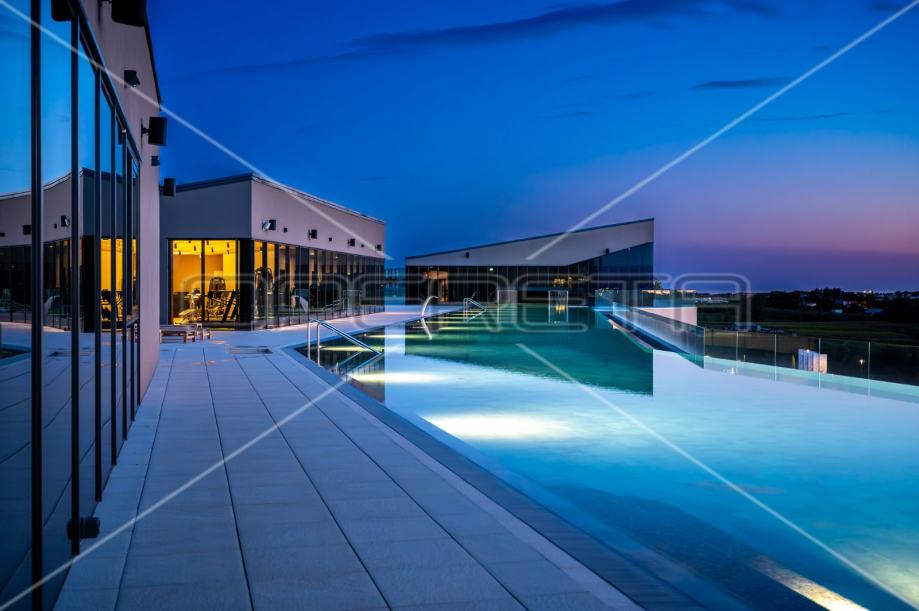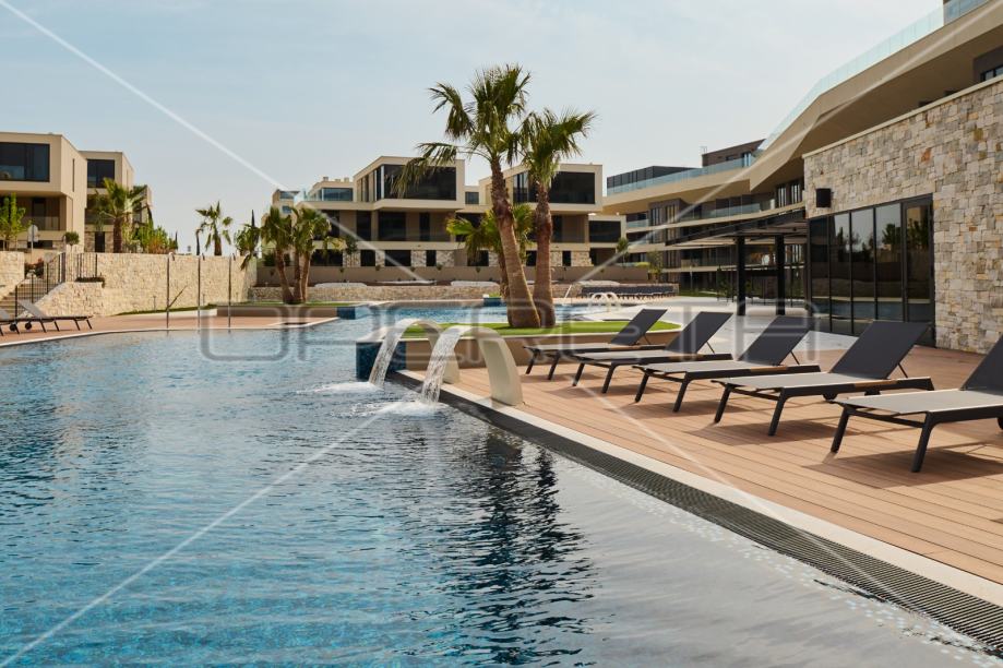 Manje od 200m udaljenosti od plaže unutar luksuznog resorta koji zadivljuje 100-metarskim bazenom na krovu aparthotela. Dizajnerski namještaj, pogled na more, blizina golf igrališta, spa centar, restorani, trgovine, bazeni unutar resorta, concierge usluga, itd. čine ovaj apartman neodoljivim. Jedinica A55 nalazi se na 2. katu, ukupne je neto površine 93,70 m2. Sastoji se od ulaza, hodnika, vešeraja, kupaonice, WC-a, 2 spavaće sobe i open space dnevnog boravka sa kuhinjom i blagovaonicom. Također, ima i lođu površine 18,80 m2.