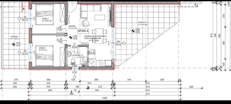 Klizne stijene su podizno-klizne 300x225cm, a prozori velikih dimenzija 180x180cm.