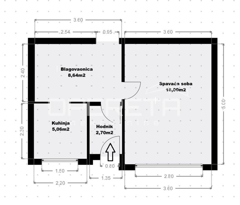 Ulazni hodnik vodi vas u mirnu spavaću sobu te u funkcionalnu kuhinju s blagovaonicom, idealnu za uživanje u svakodnevnim trenucima.