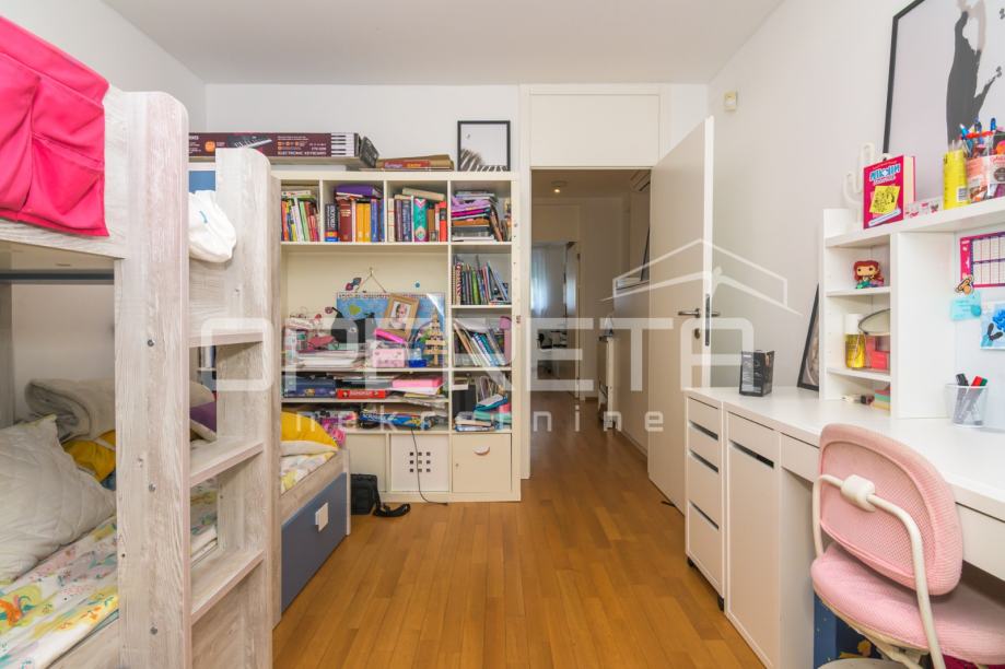 Dvostrano orijentiran stan ( sjever i jug ), nalazi se u prizemlju dobro održavane zgrade, sastoji se od ulaznog hodnika, boravka s blagovaonicom, zasebne kuhinje, degažmana s 2 prostrane spavaće sobe i zasebne garderobe, te kupaonice s WC-om.
