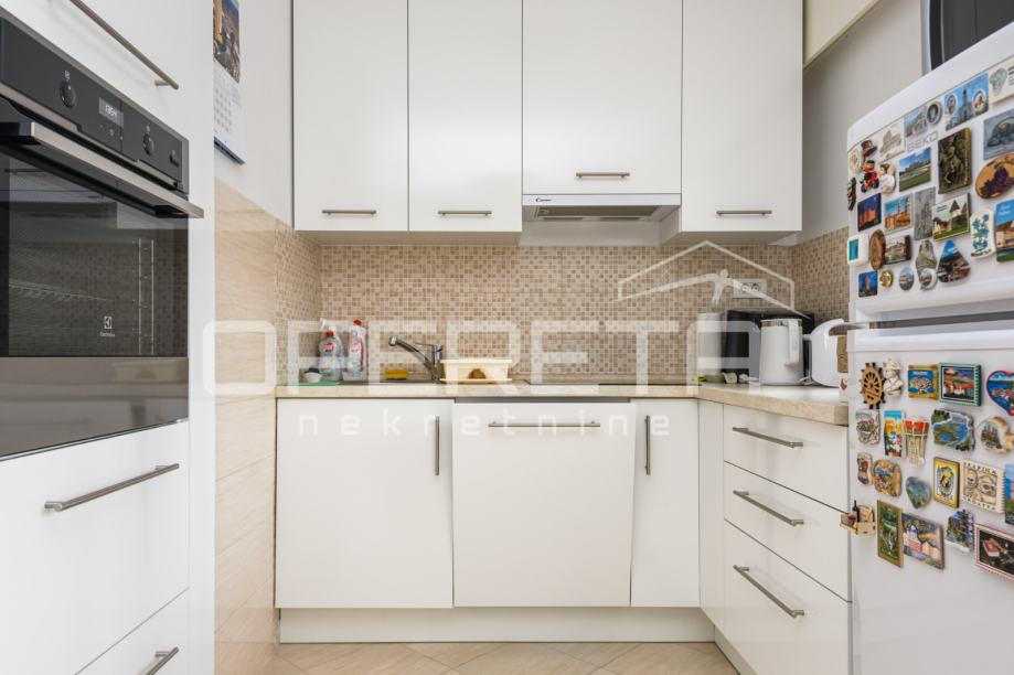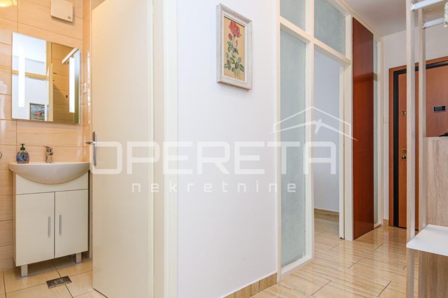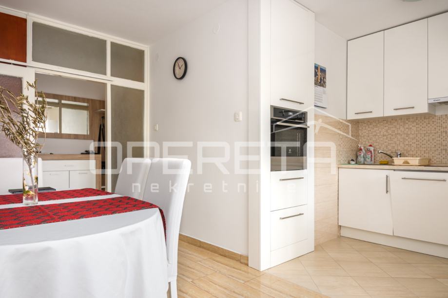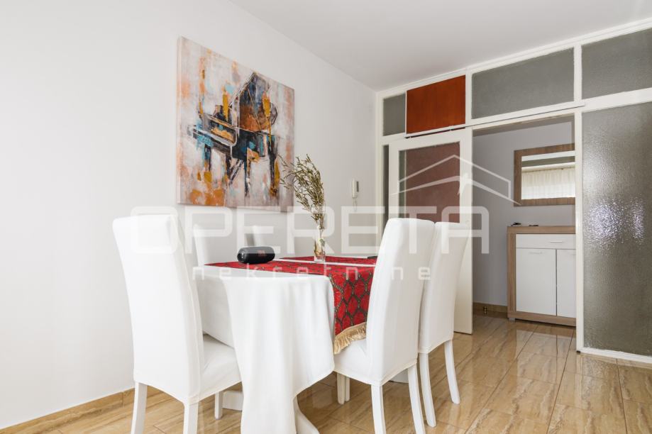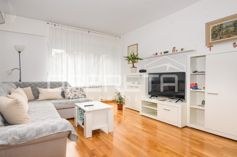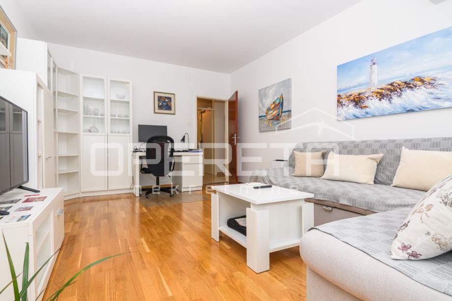 Svijetao, ugodan i kvalitetno uređen dvosoban stan dvostrane orijentacije, neto površine 55 m2 u visokom prizemlju odlično održavane zgrade s liftom, na atraktivnoj i vrlo traženoj lokaciji.