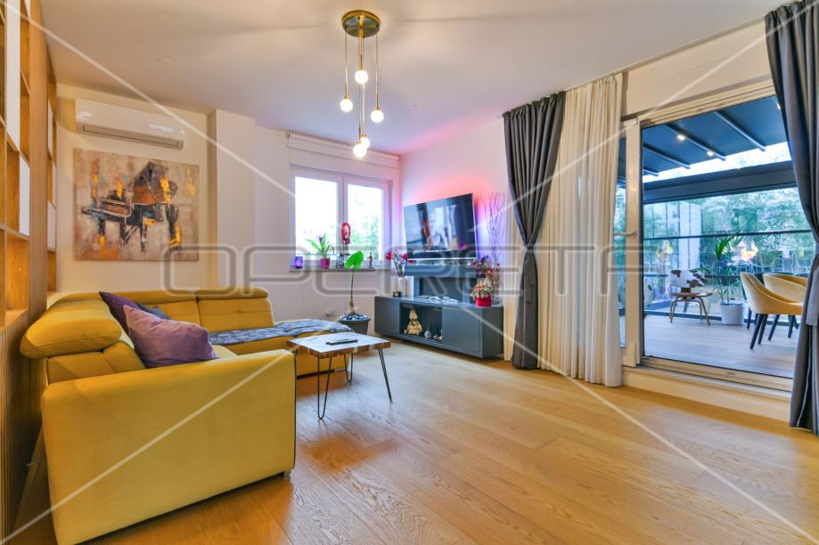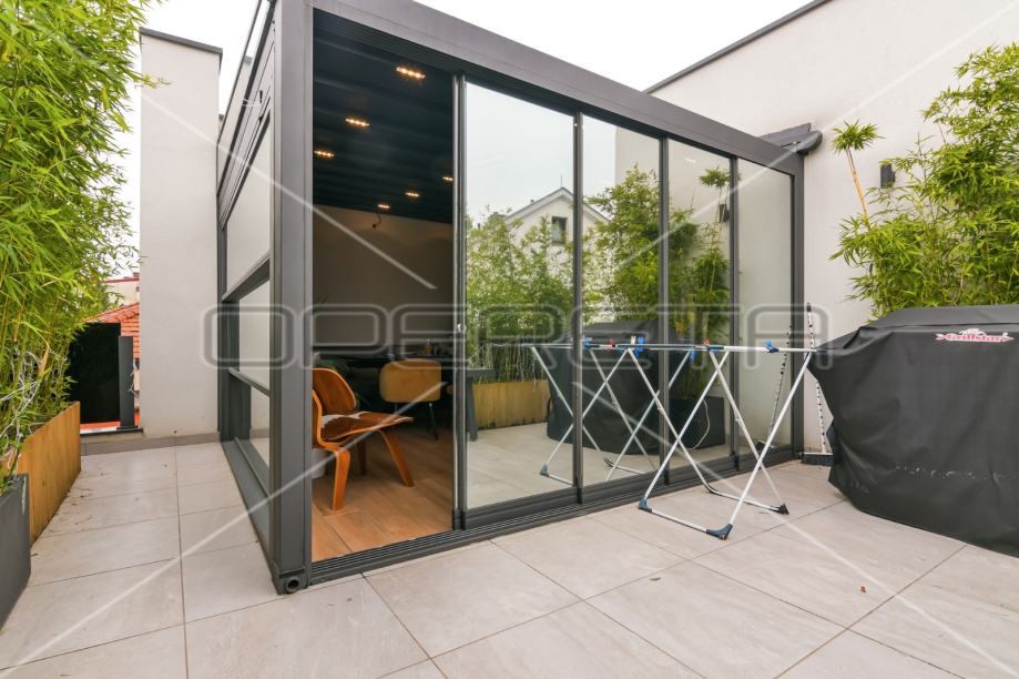 PRODAJA, STAN, ZAGREB. ŠPANSKO, Divkovićeva 3,5 soban. Moderno uređeni penthouse u zgradi iz 2021. na odličnoj lokaciji u blizini svih potrebnih sadržaja. Sastoji se od ulaznog prostora, kuhinje sa blagovaonicom, 2 spavaće sobe, kupaonice, spremišta i 2 vanjska parkirna mjesta. Od terase ja napravljen zimski vrt koji ima funkciju dnevnog boravka te ga je po potrebi moguće skroz otvoriti što daje dodatnu komociju po ljetnim mjesecima pošto se sa istog pruža lijepi pogled.