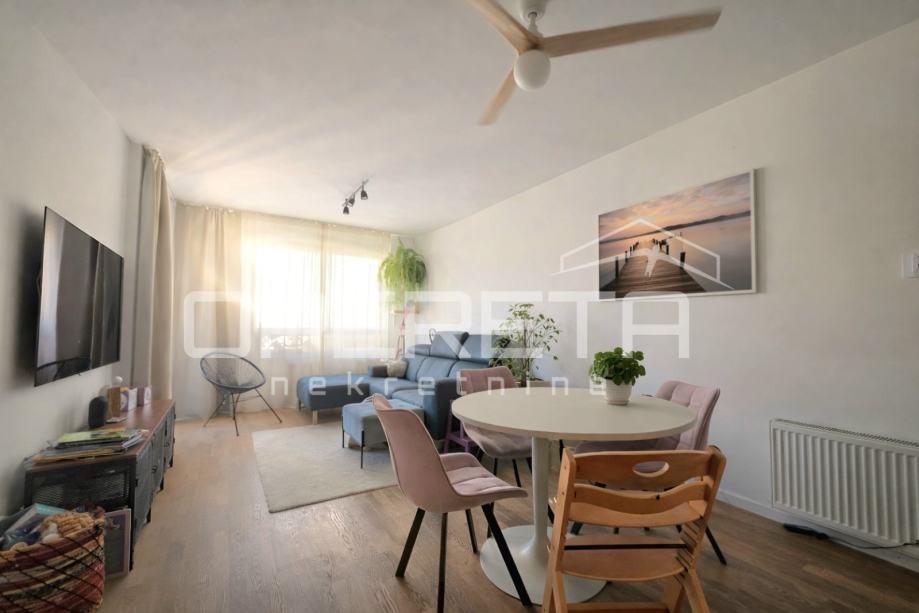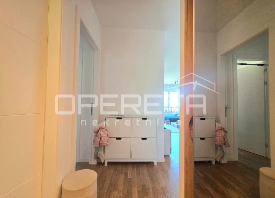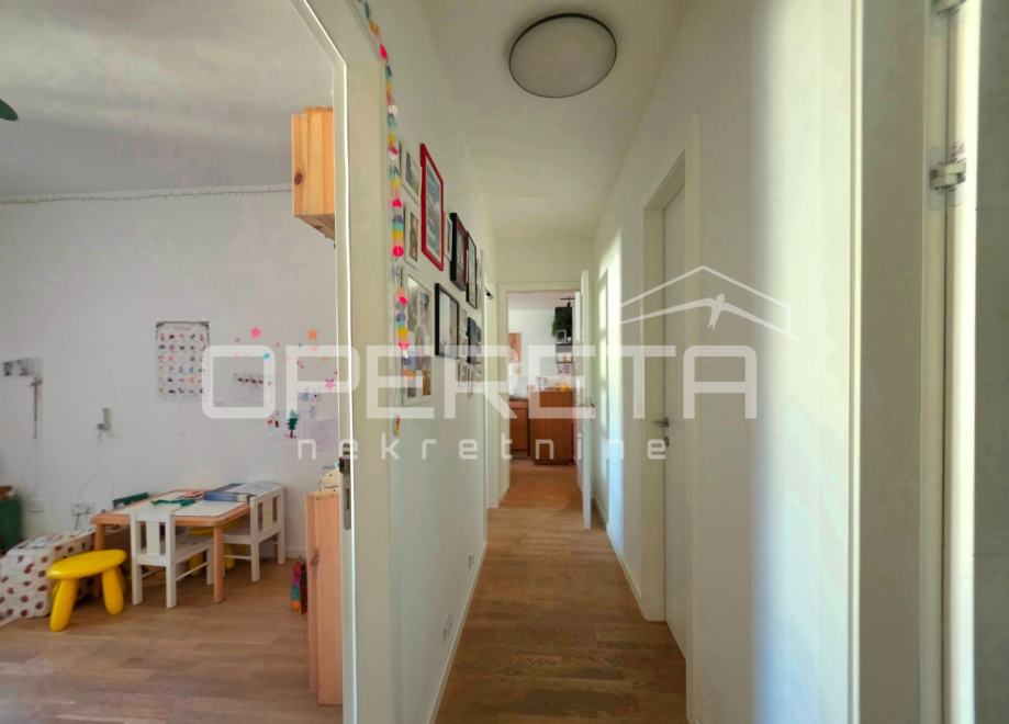 PRODAJA, STAN, ZAGREB, ŠPANSKO, 97m2, kao nov 4-soban sunčan stan u novijoj zgradi. Stan ima 86m2 zatvorenog prostora: hodnik, kuhinja s blagovaonicom i dnevnim boravkom, 3 spavaće sobe, walk in, 2 kupaonice s wc-ima, dodatni wc, ostava u sklopu stana. U ukupnu navedenu kvadraturu je uračunato po koeficijentima loggia i spremište u podrumu. Mogućnost kupovine uz nadoplatu posebno uknjiženog garažnog parkirnog mjesta 13m2 na -1 etaži. Stan se prodaje kompletno namješten i opremljen sa aparatima (Bosh, Elektolux, Samsung), tv Sonny Bravia (8K OLED), Egger paneli, parket četkani hrast (seljački pod)... Nosiva konstrukcija zgrade je armirano-betonska, a čine ju armirano-betonski zidovi, stupovi i grede preko kojih su položene armirano-betonske ploče. Stubišna jezgra i krakovi, kao i okno dizala su monolitni armirano-betonski, toplinska i zvučna izolacija, 3-slojna izo stakla, kondenzacijski kombi bojler, klima. ...Plaćanje režija po potrošnji. Izuzetno ugodan i topao stan s vrlo dobrom energijom i osjećajem doma u mirnom susjedstvu .