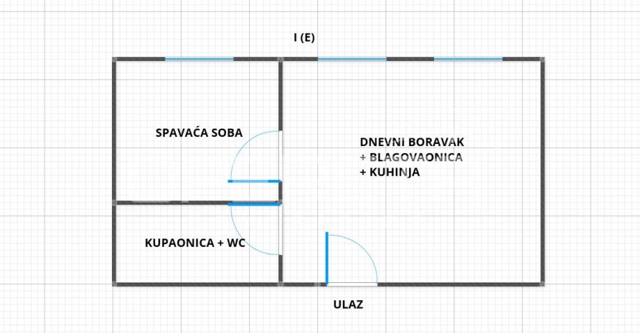 Sastoji se od dnevnog boravka s kuhinjom i blagovaonicom, spavaće sobe te kupaonice s WC-om.