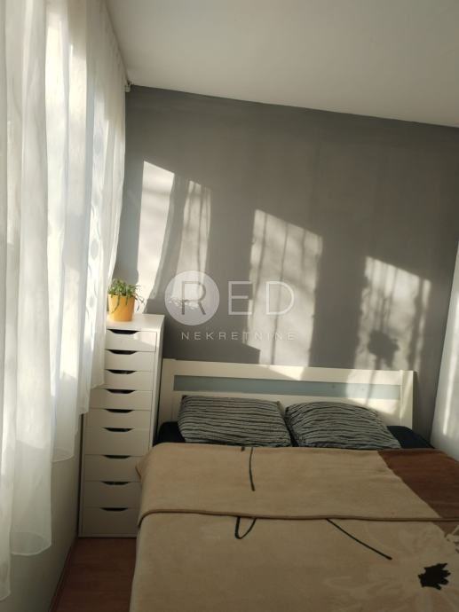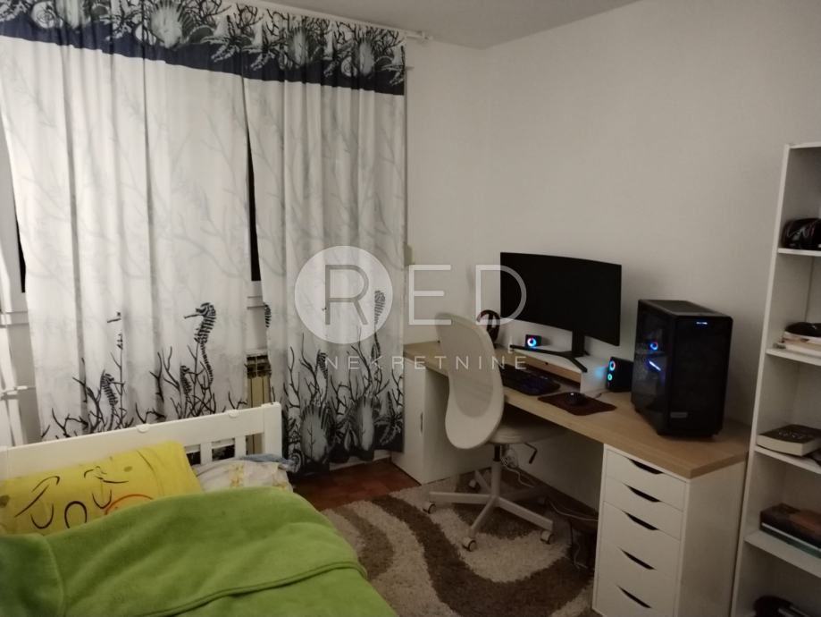 prostor je vrlo dobro iskorišten i sastoji se od: prozračnog dnevnog prostora s blagovaonicom, zasebne kuhinje, dvije komotne spavaće sobe, kupaonice i dodatnog toaleta, praktične ostave te dodatno pregrađenog dijela u dnevnom boravku (knauf konstrukcija) koji se koristi kao treća spavaća soba. Stanu pripada i spremište u podrumu zgrade.