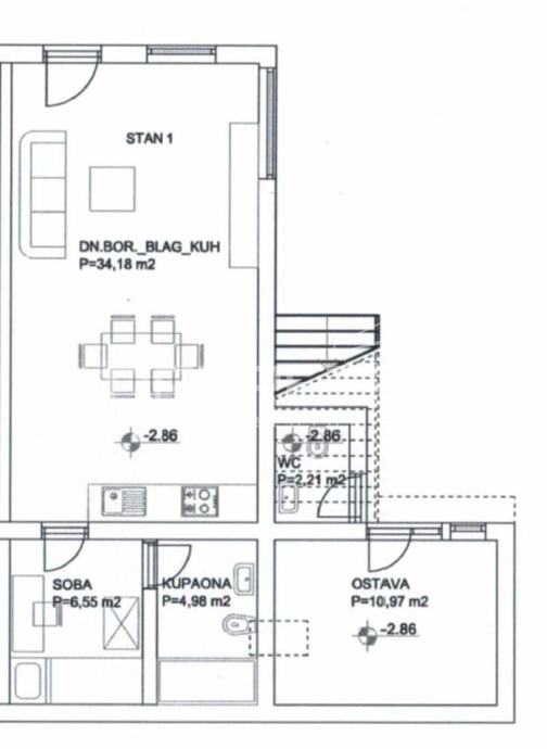 Stan se nalazi u razizemlju s pogledom na limunik, ukupne zatvorene površine 45,71 m2, a sastoji se od dnevnog boravka s blagovaonicom i kuhinjom u otvorenom konceptu, spavaće sobe i kupaonice. Ispred stana nalazi se terasa, idealna za opuštanje i uživanje u mediteranskoj atmosferi. Mogućnos parkinga u blizini. Površina terase bit će naknadno utvrđena i dodana u kvadraturu. Datum useljenja 1.10.2026.