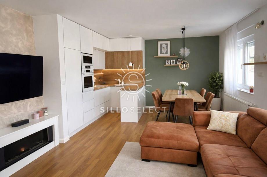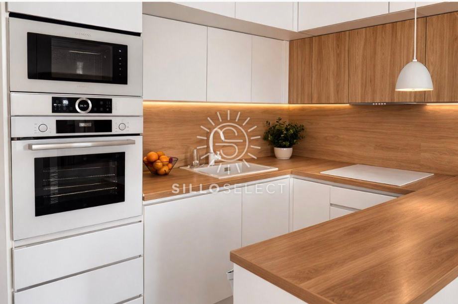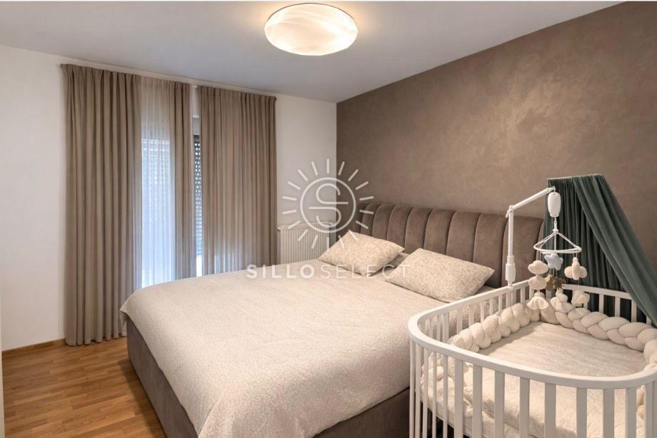 Sastoji se od tri spavaće sobe i dnevnog boravka s kuhinjom i blagovaonicom u otvorenom konceptu, a dodatnu funkcionalnost pruža walk-in garderoba te namještaj izrađen po mjeri.