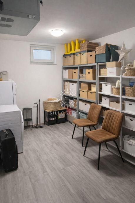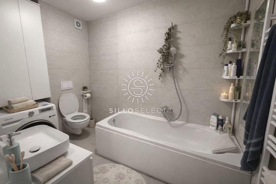 Stan ima dvije kupaonice (tuš i kada), balkon od 7 m² i privatni vrt od 27 m². Uz njega dolaze i podrum od 17 m² s priključkom za struju te vlastito parkirno mjesto.