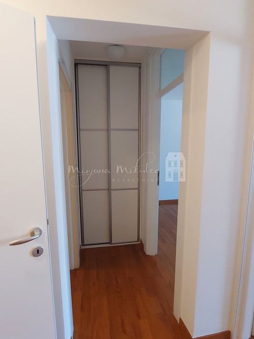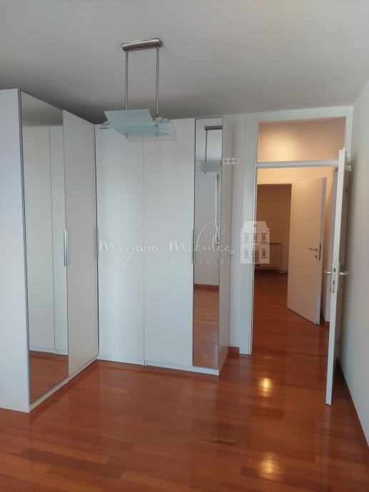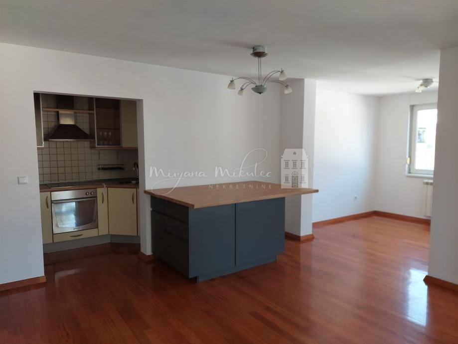 Stan je kvadrature 114,42 m2 koju čine: 2 prostrana hodnika, 2 kupaonice, 3 spavaće sobe, ostava/smočnica te glavni dnevni prostor koji je tzv open space koncept ( dnevni boravak, blagovaona i kuhinja), također uz stan ide i ostava u podrumu zgrade. Postoji mogućnost povećanja kuhinje jednostavnim zahvatom. Oprema: pločice u kupaonicama i ostavi, parket u ostatku stana, klima uređaji, protuprovalna vrata, pvc stolarija, grijanje centralno etažno. Stan se prodaje sa namještajem koji se u njemu nalazi ( kuhinja sa uređajima te ormari u sobama).