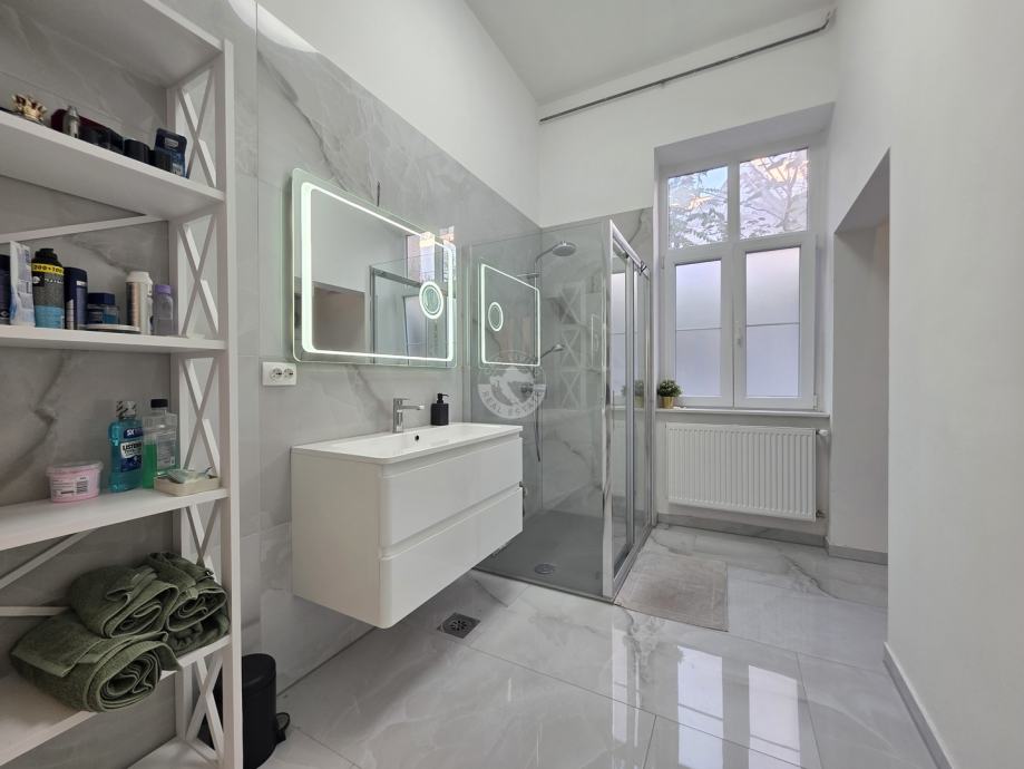 Visoki stropovi, obilje prirodnog svjetla tijekom cijelog dana te prozračnost prostora pružaju poseban osjećaj udobnosti i elegancije. Stan se nalazi u održavanoj zgradi s čvrstom konstrukcijom, a orijentacija i kat pružaju mir, ali i neposrednu povezanost s užurbanim gradskim životom.