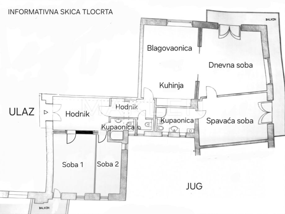 Prodaje se četverosoban stan ukupne površine 139 m2 na četvrtom katu zgrade s liftom.