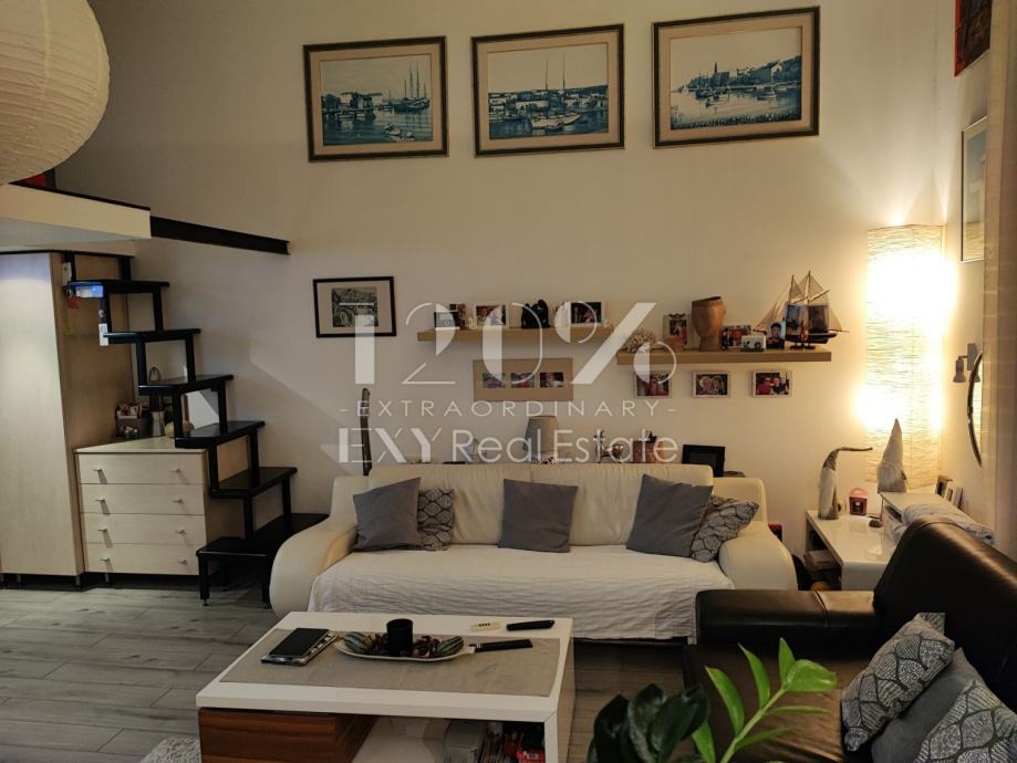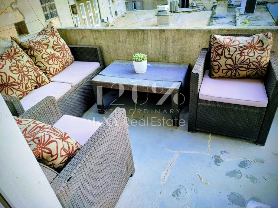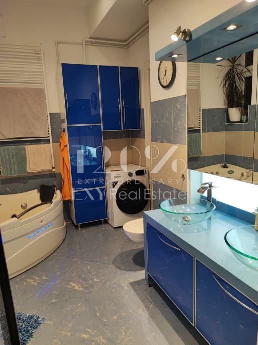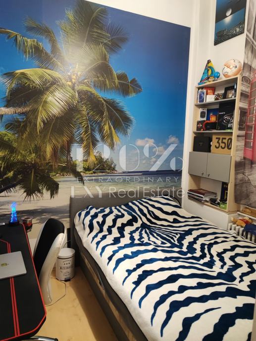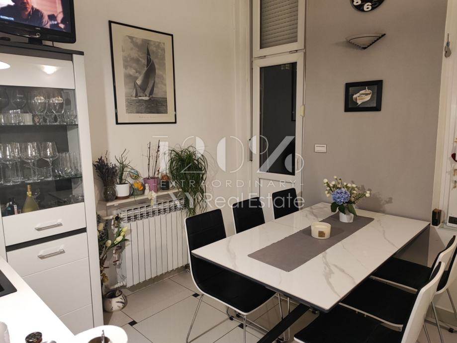 Sastoji se od ulaznog hodnika, dnevnog boravka, 2. kupaonice s wc-om, kuhinje s izlazom na balkon (dvorišna strana) i 2 spavaće sobe. Jedna od spavaćih soba je pretvorena u apartman od 40m2 s čajnom kuhinjom i kupaonom. Mogućnost spajanja sa stanom, kao i vanjski zaseban ulaz. Trenutačno se nalazi u najmu, mogućnost preuzimanja najma.