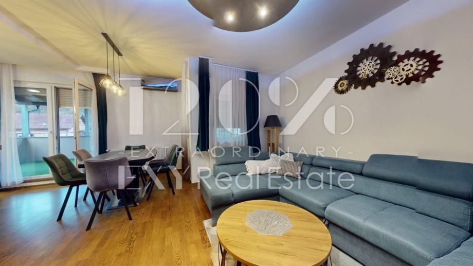 Stan je kompletno renoviran 2019. godine. Prilikom uređenja pomno se pazilo na svaki detalj – ugrađena je kuhinja po mjeri s uređajima renomiranih brendova, hrastov parket visoke kvalitete te namještaj izrađen po mjeri. Stan se prodaje namješten i odmah je useljiv.