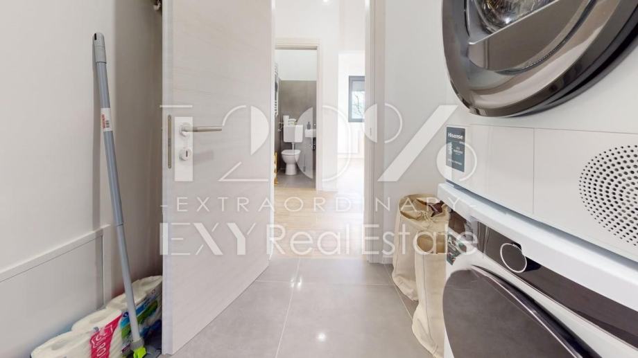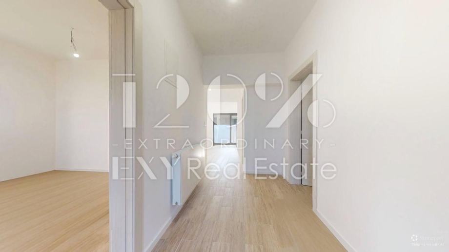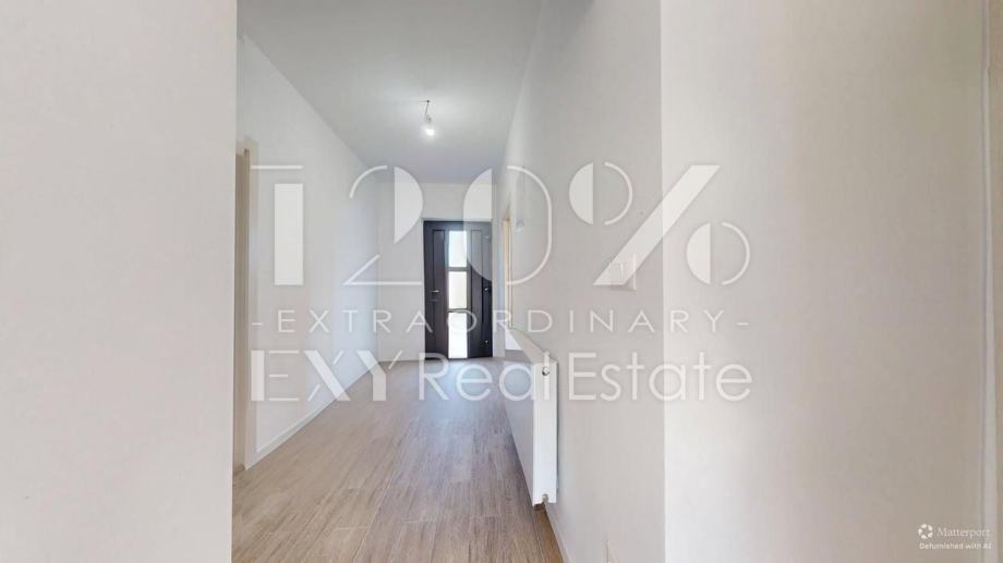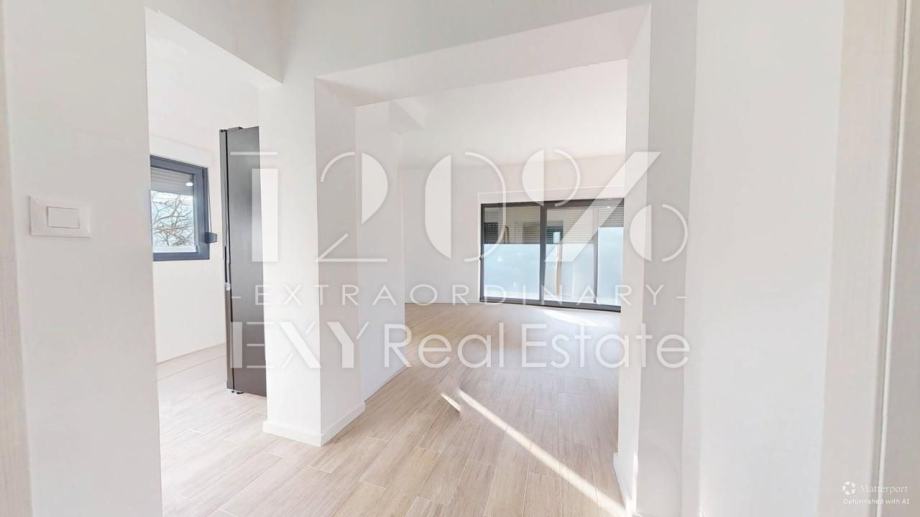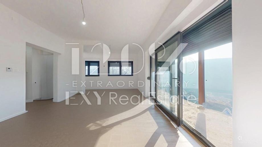 Stan se nalazi na prvom katu manje stambene zgrade od 4 stana. Sastoji se od ulaznog hodnika, 2 spavaće sobe, kupaonice, toaleta za goste te open space dnevnog boravka i kuhinje s izlazom na balkon s kojeg se pruža predivan pogleda na Medvednicu i zelenilo. Stanu pripada terasa i 2 parking mjesta. Stan je kompletno adaptiran 2026. godine. Prilikom uređenja birali su se visoko kvalitetni materijali.