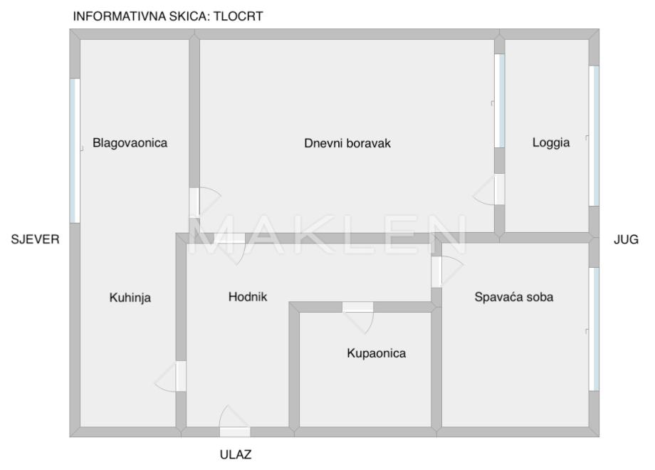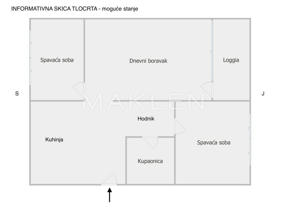 Uz minimalne preinake u stanu se može izvesti još jedna spavaća soba (pogledati informativnu skicu tlocrta - moguće stanje).